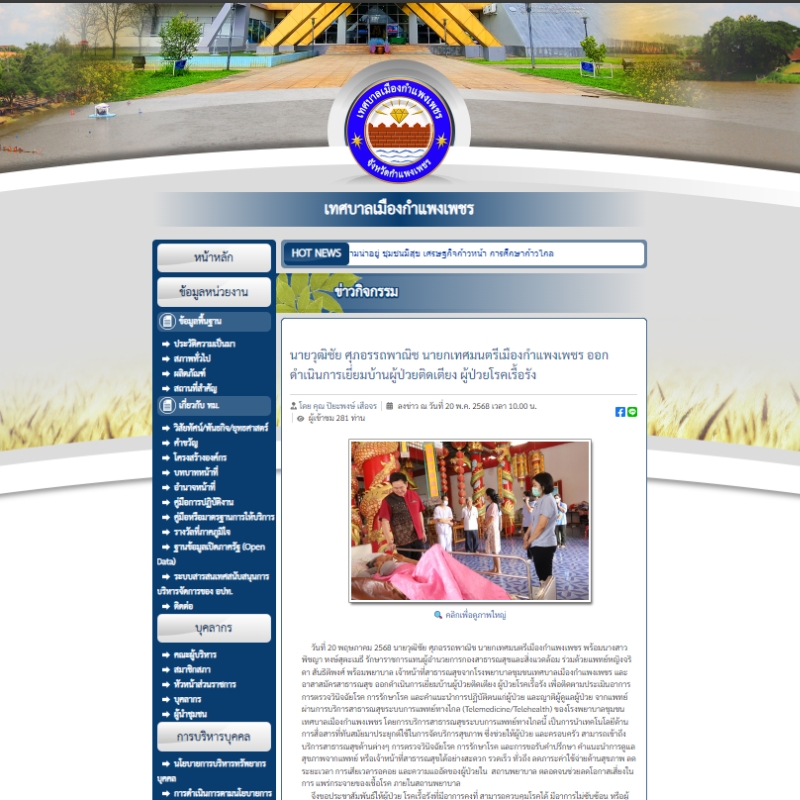 Kamphaeng Phet Municipality has implemented telemedicine consultation services for bedridden and chronically ill patients at their residences to enhance healthcare accessibility and ensure continuous monitoring of patients’ health status.